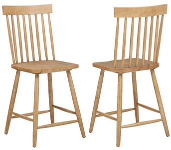 Classic and casual with a fresh farmhouse flair, this Windsor-style counter height chair features a high spindle back and gently contoured seat for timeless comfort. The clean silhouette is crafted from solid rubberwood with a rich wood veneer that enhances its natural grain. Angled legs with double stretchers offer reliable support and charm.Read More