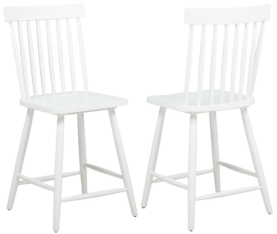 Windsor-style counter height chair in white finish brings casual elegance to kitchen counters
