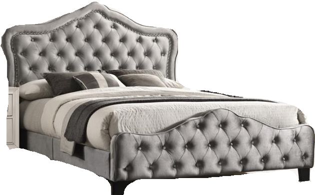 Create your ideal royal slumber chambers with this magnificent upholstered bed. Exceptionally elegant from all aspects, this piece is entirely upholstered on both the headboard and footboard. With button tufting and nail head trim accents. this piece is the epitome of style.Read More