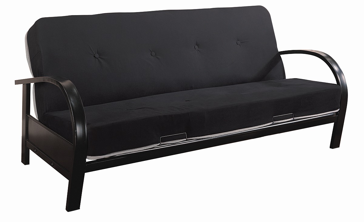 Welcome last minute guests with this modern futon frame, great for a home office or small living room. Constructed of durable metal, the sleek curves of the frame feature a glossy black finish.Read More