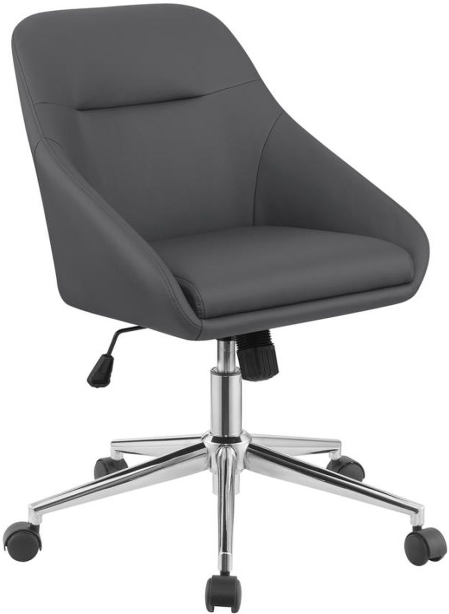 Wrapped in soft and smooth leatherette, this modern office chair features contoured edges for an elegant, contemporary silhouette. Lean against the supportive, comfortable backrest as you focus on work and other tasks.Read More