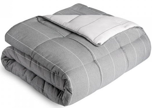 Stylish chambray-inspired pin-striped cover eliminates need for duvet cover