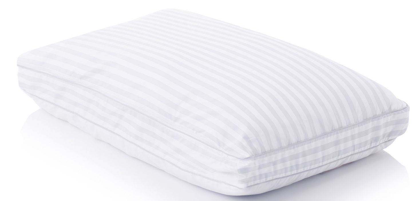 The Convolution® is crafted with the multi-position sleeper in mind and offers different levels of customizable support. A convoluted memory foam core encased in airy Gelled Microfiber® fill creates a soft, supportive sleeping surface, while the other side offers more support for side sleeping. Remove the core for an ultra-plush, luxurious down feel without odors, allergens, and sharp quills. A 300 thread count damask striped cover encases this pillow for added comfort. Cover: 100% cotton, Fill: 50% siliconized polyester fiber, 50% polyurethane foam.