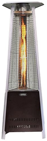 The inviting flame will safely light up the night as it dances inside a 50% wider quartz glass tube. The triangle reflector hood evenly spreads the 42,000 BTU's of heat across your outdoor space. You can adjust the flame and the heat output by simply turning the temperature control knob which is located behind the front panel. The push button ignition system makes this unit simple and safe to operate. It will run up to 10 hours on the highest setting. The PHTRGH-34 comes with a 1 year warranty. Whether it's a family gathering or a business party, The Original SUNHEAT patio heater will add warmth and style to any occasion.