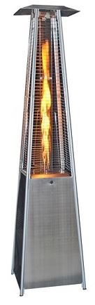 The Original SUNHEAT Restaurant quality patio heater features a contemporary square design and a decorative variable flame to heat up any outdoor gathering. The unique pyramid shape provides functionality and style that will warm and accentuate your patio or deck. The enchanting flame will safely light up the night as it dances inside a four feet tall glass tube. The 18 inch triangle reflector hood evenly spreads the 40,000 BTUÆs of heat across your outdoor space, up to 12 feet in diameter. You can adjust the flame and the heat output by simply turning the temperature control knob which is located behind the front panel. The push button ignition system makes this unit simple and safe to operate. This industrial quality heater will run up to 10 hours on the highest setting. The PHSQSS model comes with a one year warranty. Whether itÆs a family gathering or a business party The Original SUNHEAT patio heater will add warmth and style to any occasion.